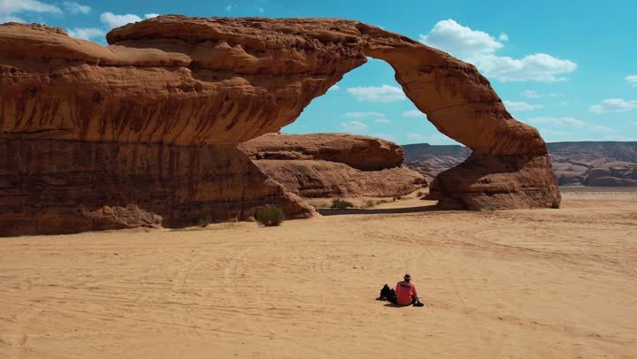 Resembling an elephant in its body and trunk, this natural wonder is located 11 km north of Al-Ula. It was formed by natural erosion and sculpting from water and wind, reaching a height of 171 feet, surrounded by towering mountains resembling a wall shaped by nature.